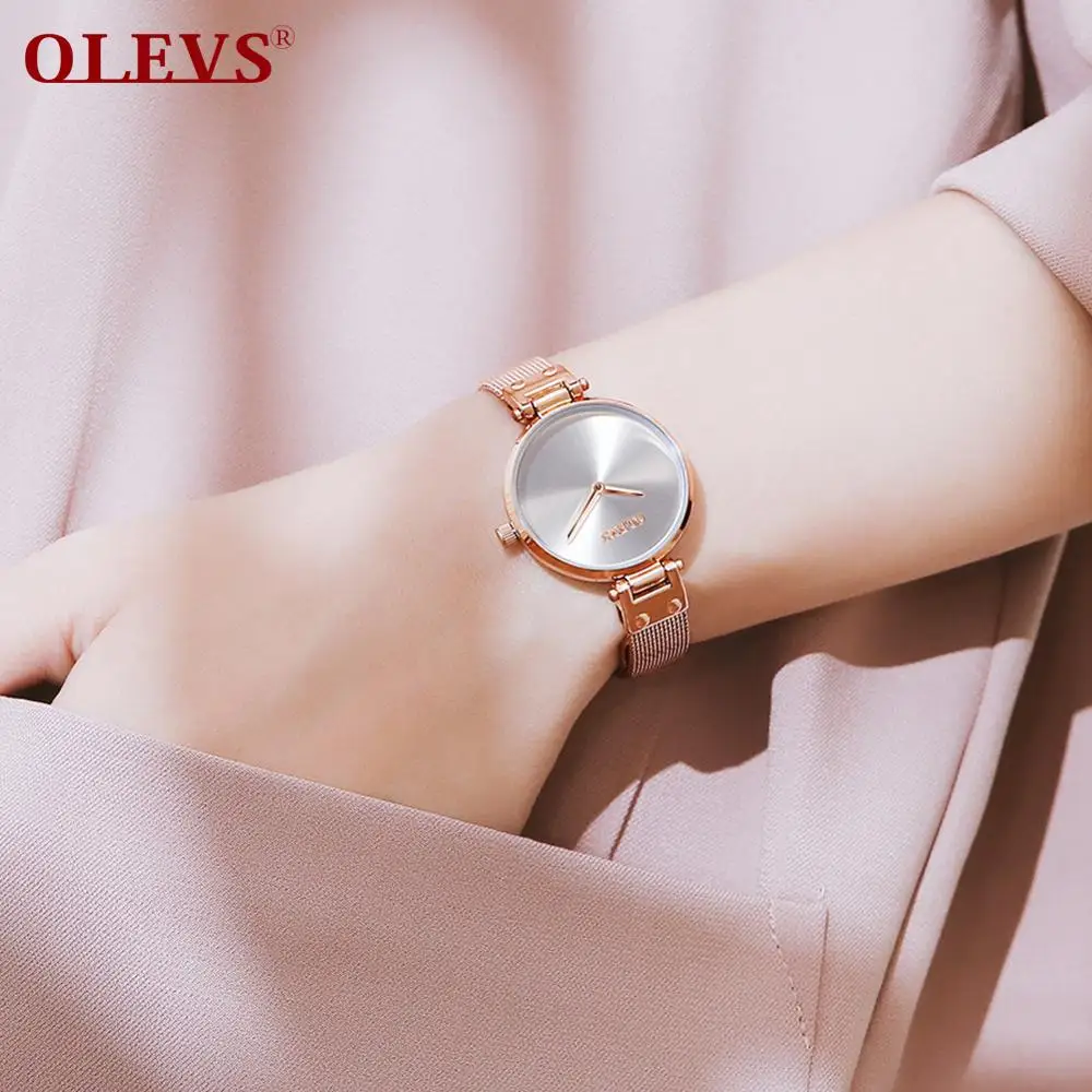 BEST QUALITY OLEVS High quality Rose Gold Women Watch Original Imported Movement Fashion Simple Style Steel Stra