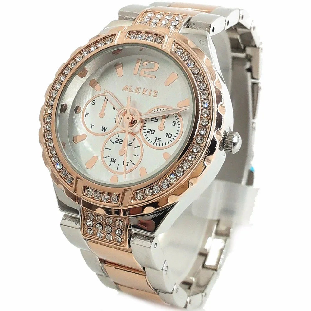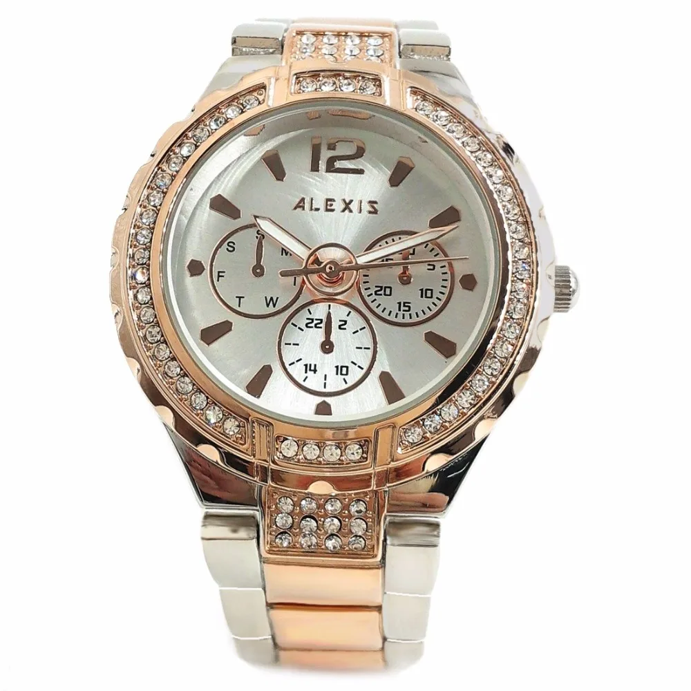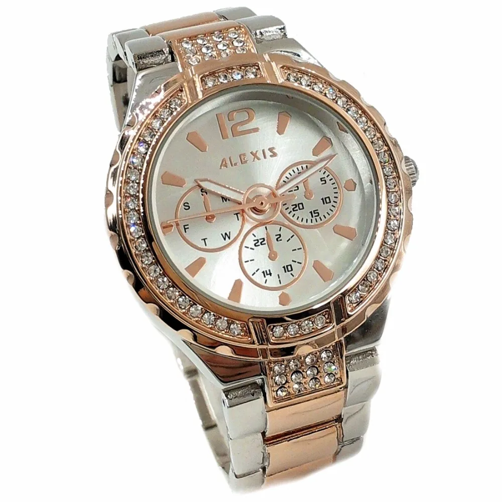 BEST QUALITY Alexis Women Analog Quartz Round Wrist Watch Japan PC21J Movement Rose Gold with Shiny Metal Band S