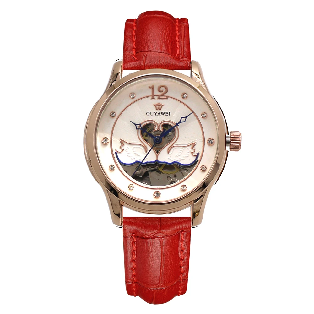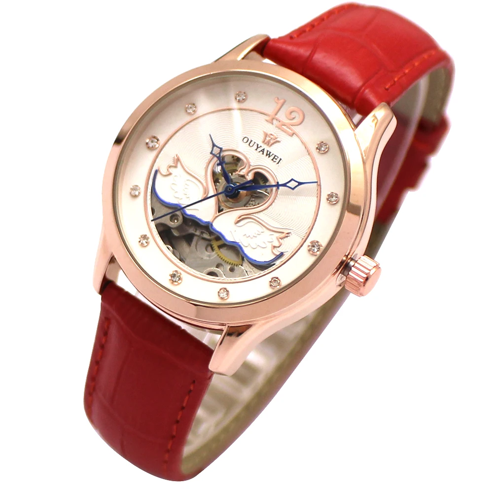 ORIGINAL OUYAWEI Fashion Brand Women Mechanical Watches Women Mesh Stainless Steel Strap Fashion Skeleton Di