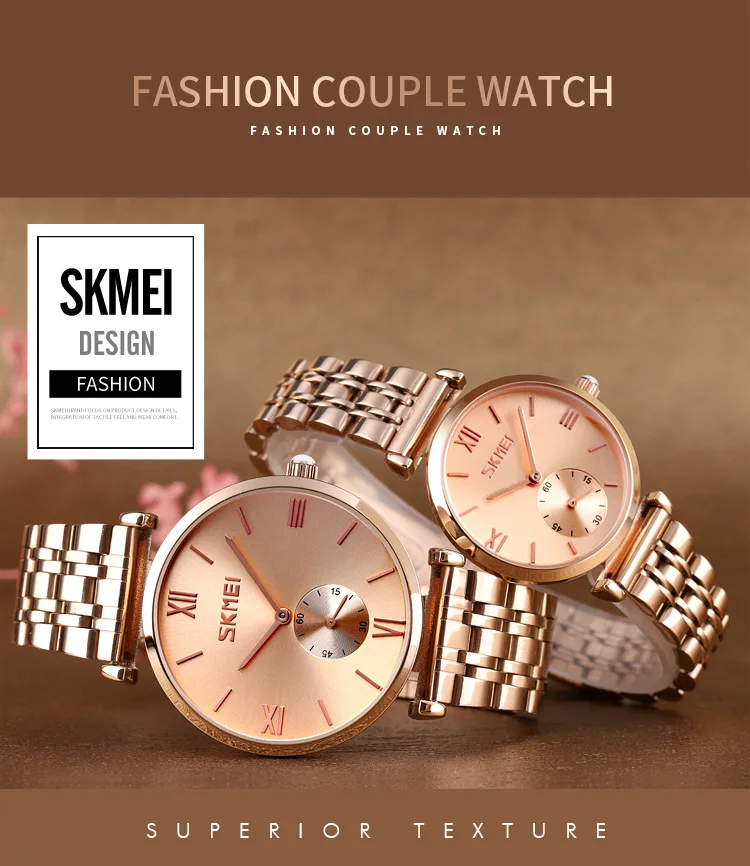 SKMEI Luxury Quartz Women Watch Fashion Waterproof Stainless Steel Strap Men Couple Watches Christm