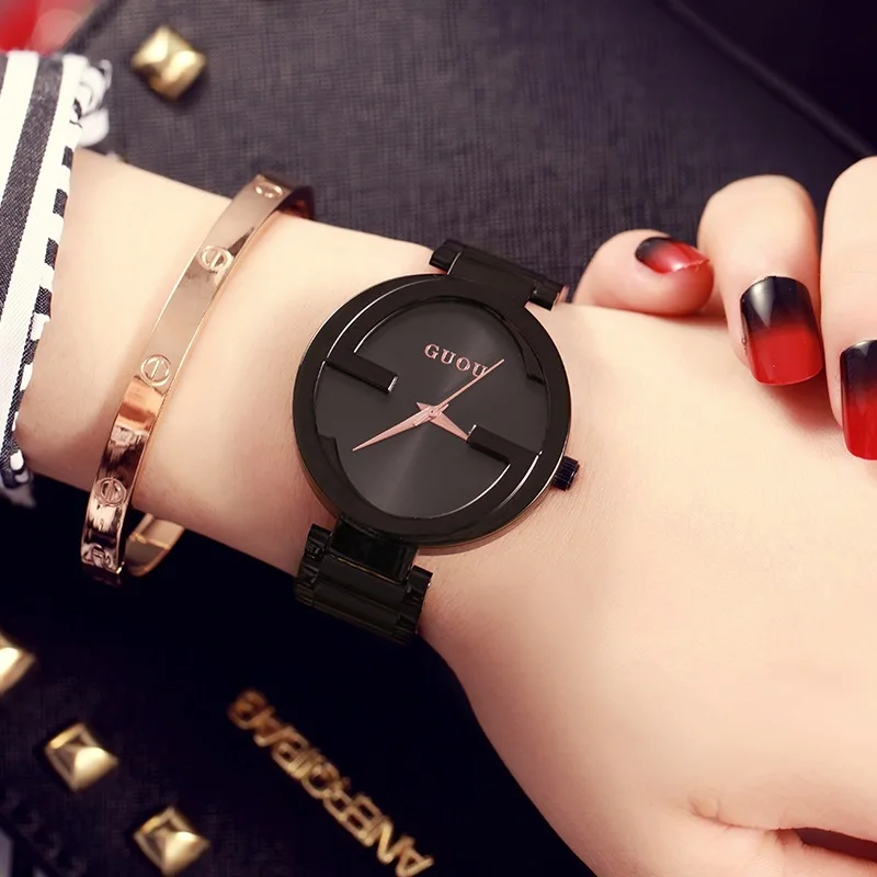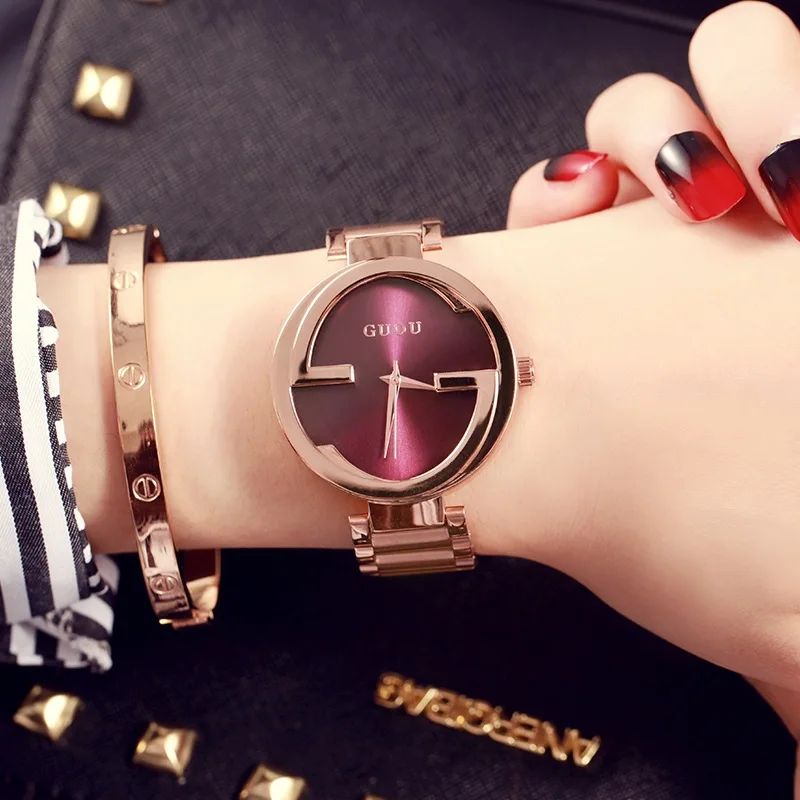 Fashion Guou Brand Unique Women Luxury Rose Gold Steel Quartz Wrist Watch Relogio Feminino Lady Lux
