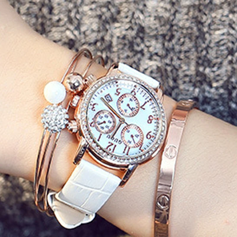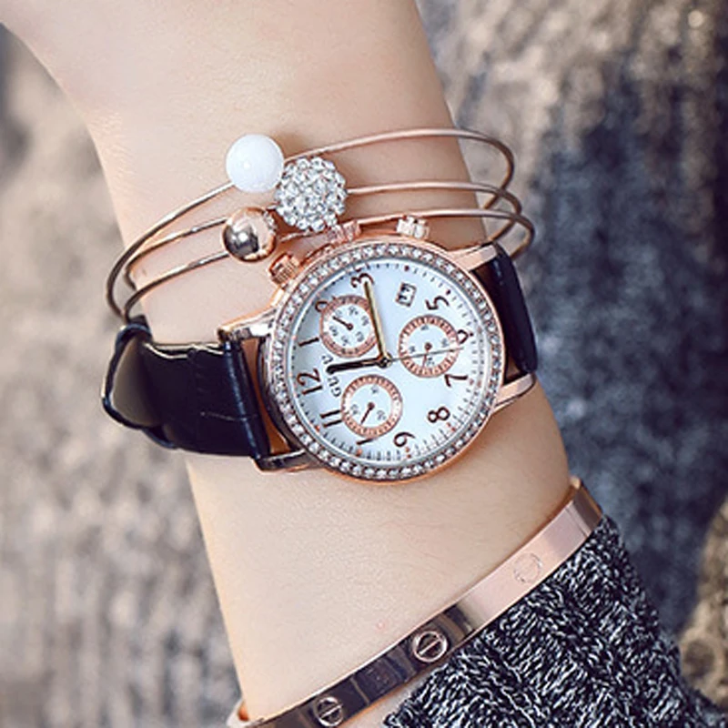 GUOU Ladies Watch Fashion Luxury Diamond Women's Watches Leather Wrist watch Women Watches montre s