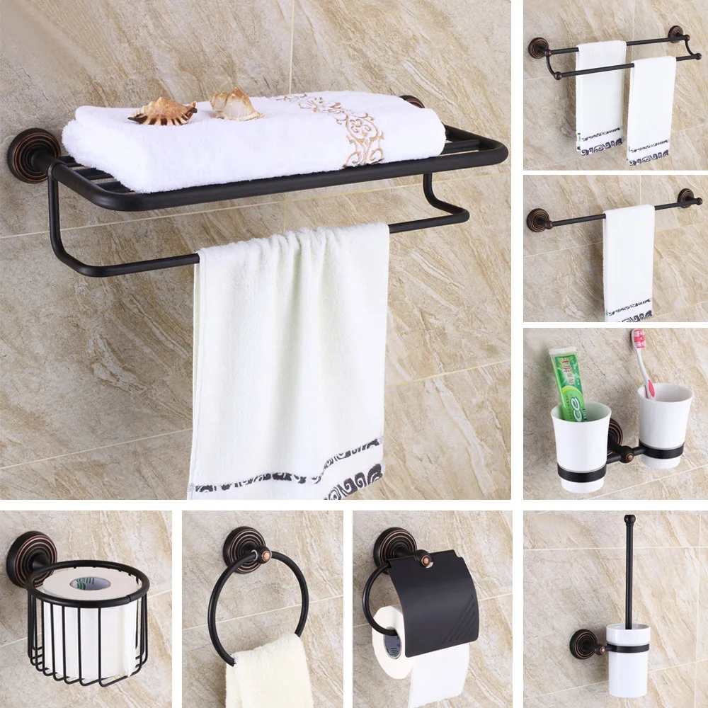 Black Oil Rubbed Bronze Bathroom Hardware Set Towel Shelf Towel Bar Paper Holder Cloth Hook KD969