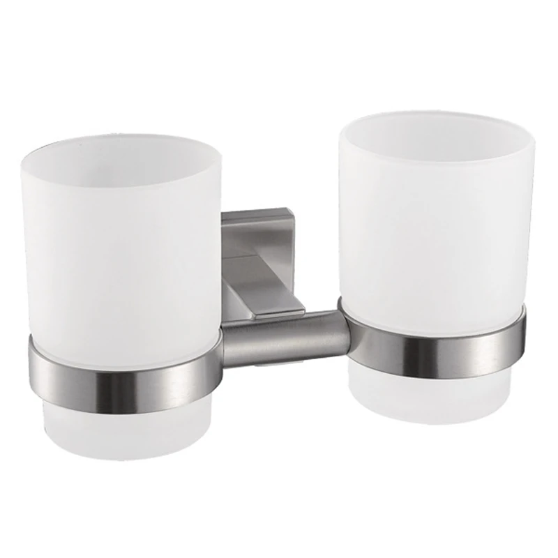 FashionStainless Steel Cup Tumbler Holders Double Glass Cup Holders Wall-Mount Toothbrush Tooth Cup
