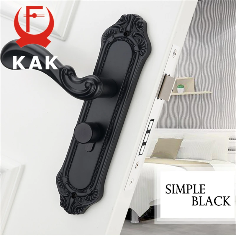 KAK Zinc Alloy Black Mute Bedroom Door Lock Handle Interior Door Knobs Lock American Style Anti-the