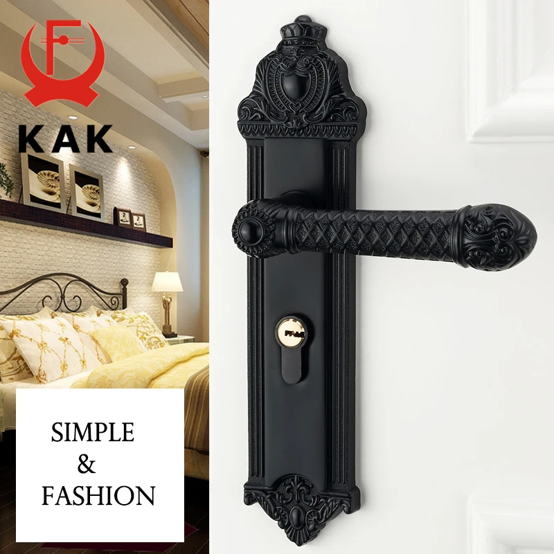 HIGH QUALITY KAK Zinc Alloy Black Mute Bedroom Door Lock Handle Interior Door Knobs Lock American Style Anti-the