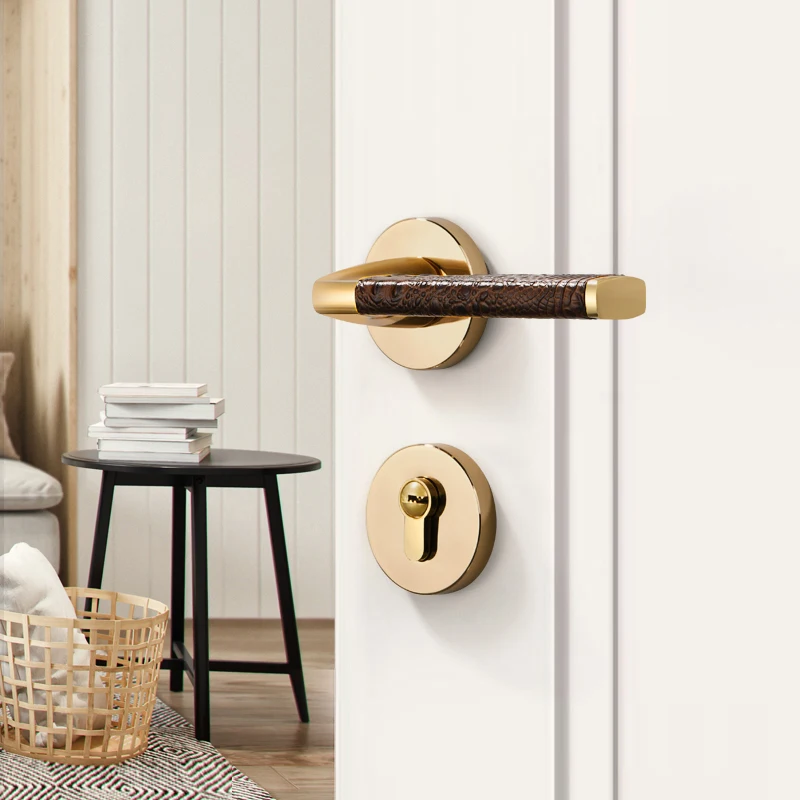 ORIGINAL Leather +Zinc Alloy Door handle with Lock Interior Door Lock Washroom/Kitchen/Toilet Anti-theft Loc