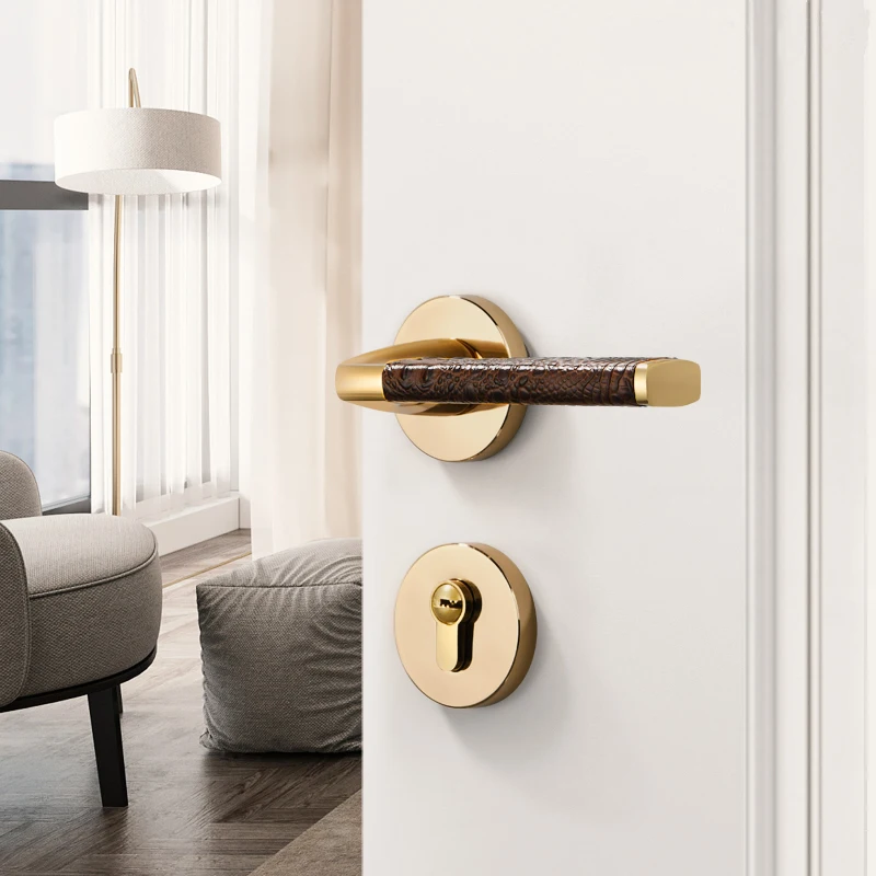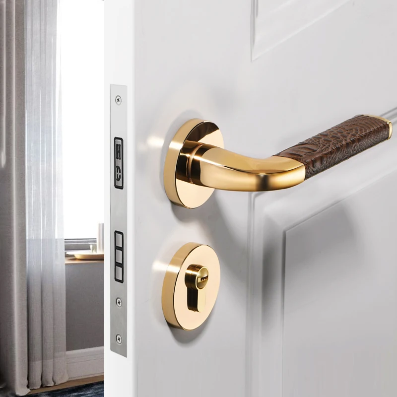 Leather +Zinc Alloy Door handle with Lock Interior Door Lock Washroom/Kitchen/Toilet Anti-theft Loc