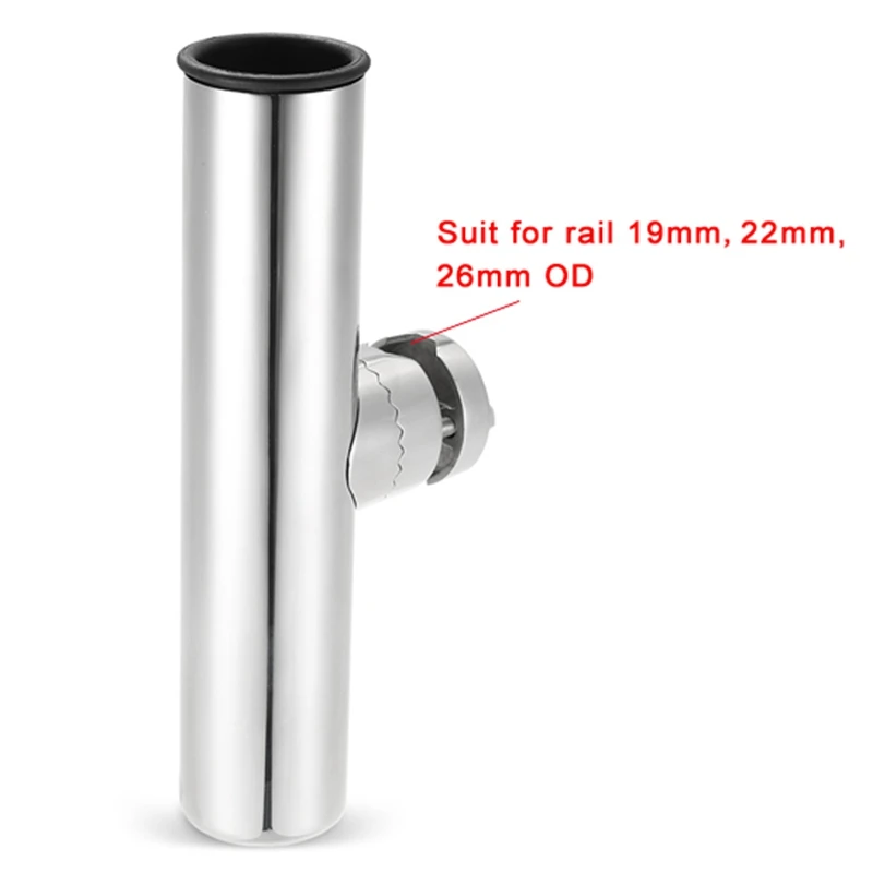 Rail Mount Stainless Steel Fishing Rod Holder Rack Pole Bracket Support With Clamp On 3/4 To 1 Inch